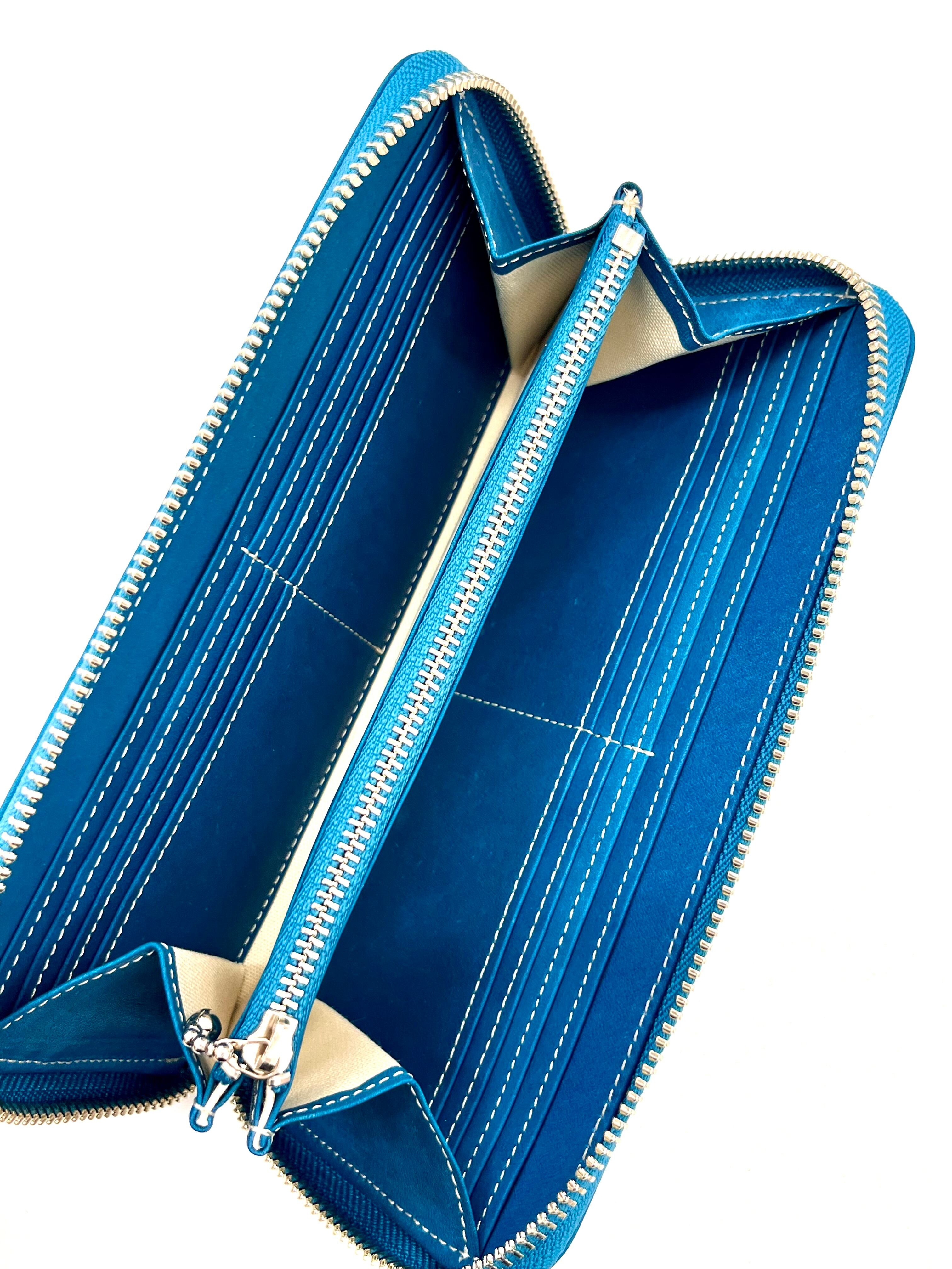 しまね和牛からつくられた出雲レザーの革を使用したカードや小銭などの収納力に優れた長財布。